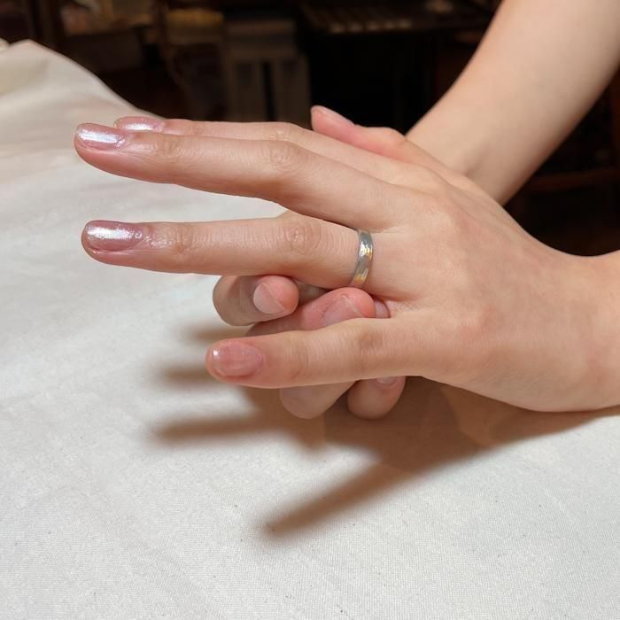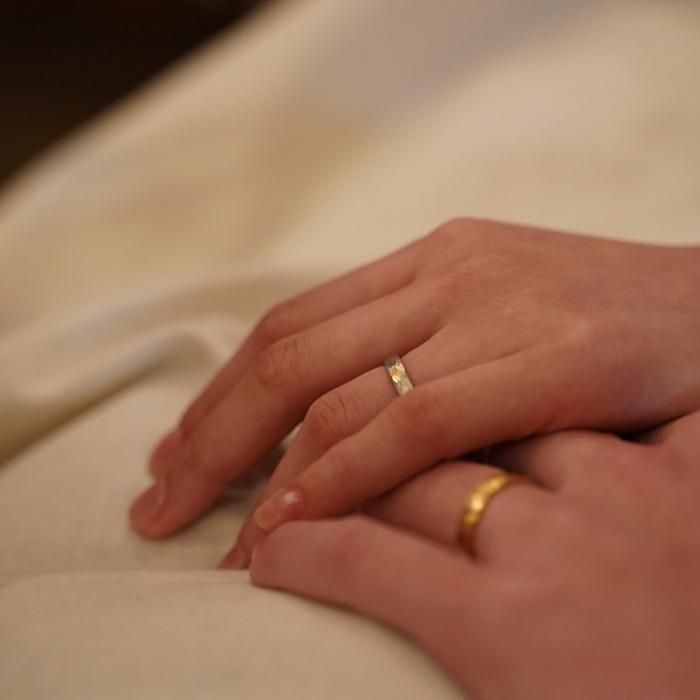 ペアリング画像のように異なる地金種類でベースになるリングをお選びいただいて、斑カラーにはパートナーのリングカラーをチョイスする、お二人の想いをのせ合うシャッフルリングとしても人気のあるシリーズです。