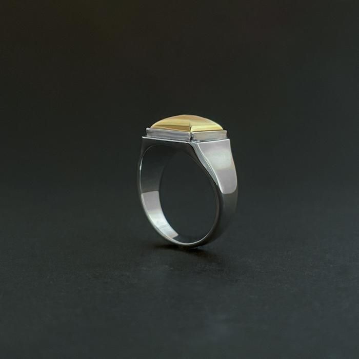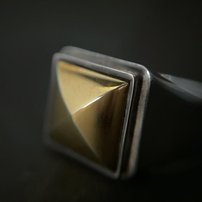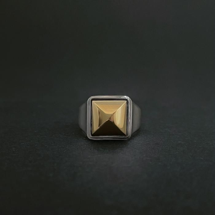 鋲ジャンやスタッズベルトを想起させる、ロックでパンキッシュな印台タイプのファッションリング。