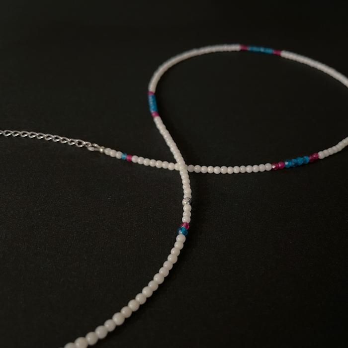 ブレスレット使用時に長さ調節が可能な、アジャスターチェーン付き白珊瑚ベースのグラスコード。