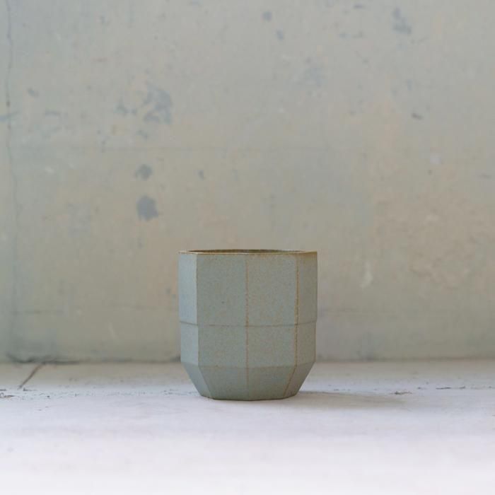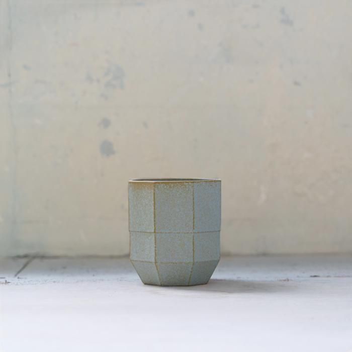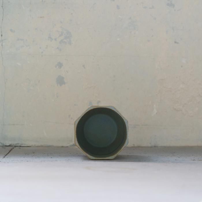 陶磁器製 変型八角柱 約12cm×口径11cm×底面最長7.5cm ヴィンテージ・ブルー