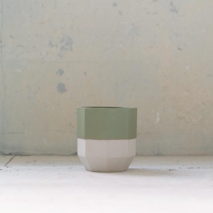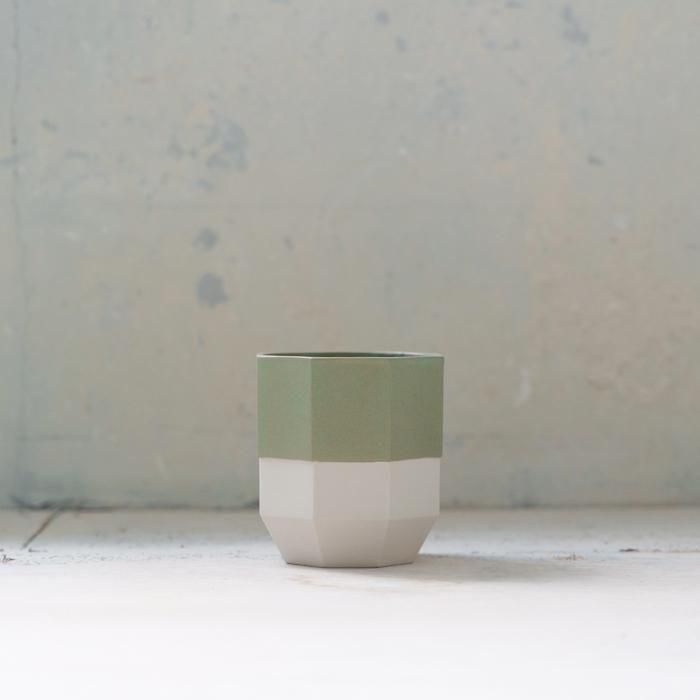 ナチュラルで落ち着いたトーンのモスグリーンと白く美しい白磁土のバイカラーで