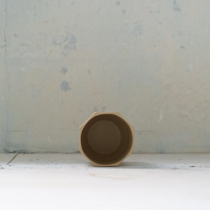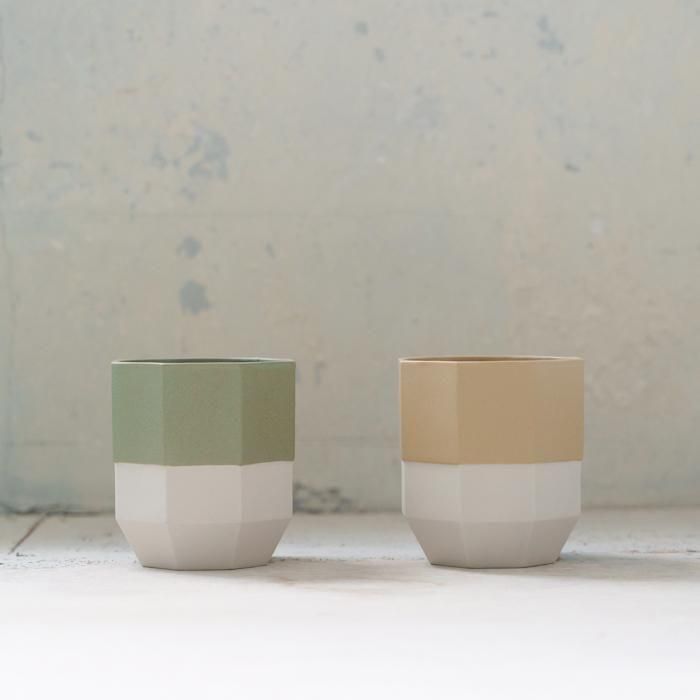 陶磁器製 変型八角柱 約12cm×口径11cm×底面最長7.5cm バイカラー・アプリコット