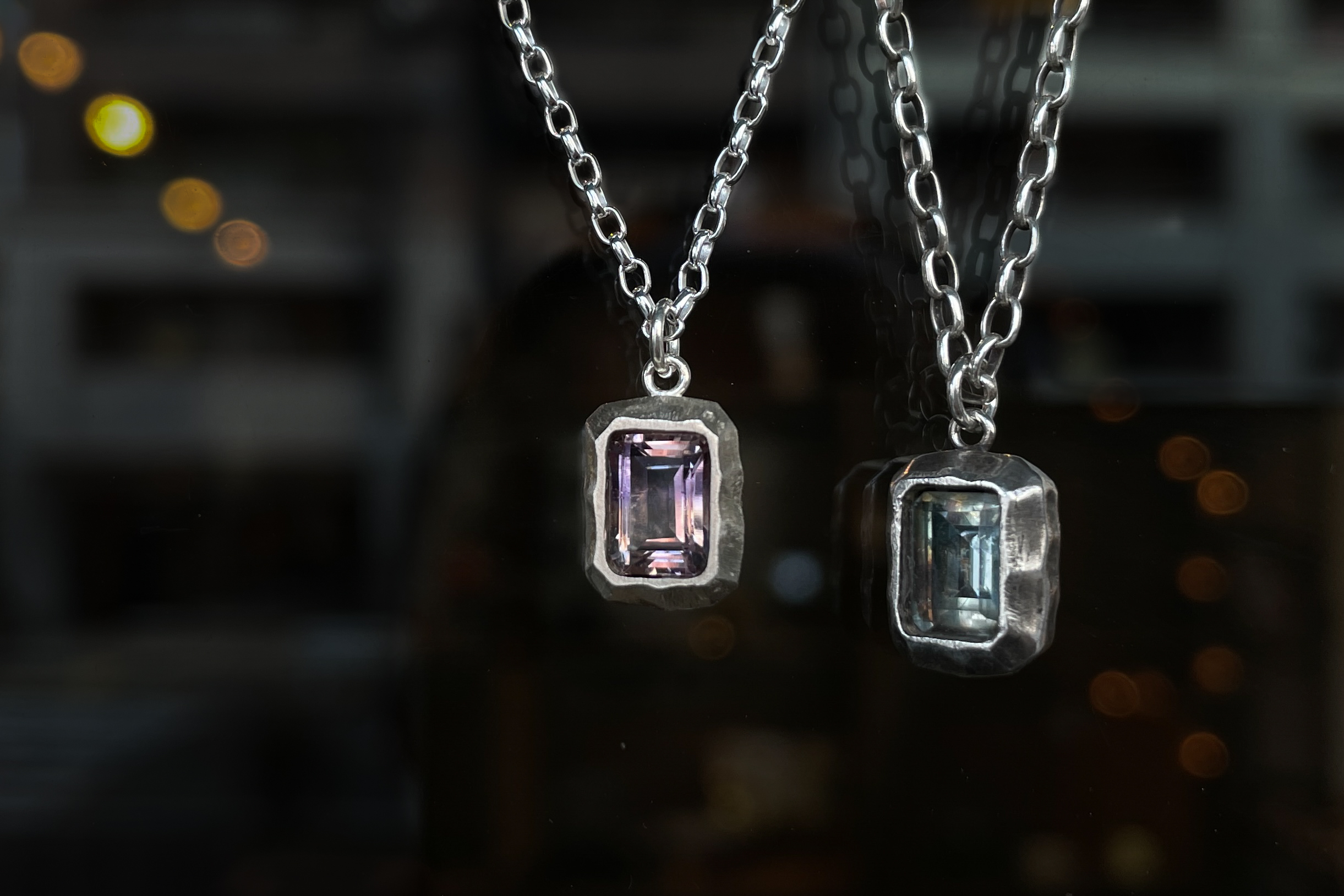 レクタングルカット(長方形)の天然石をセッティングしたシルバーペンダントをご用意しました。